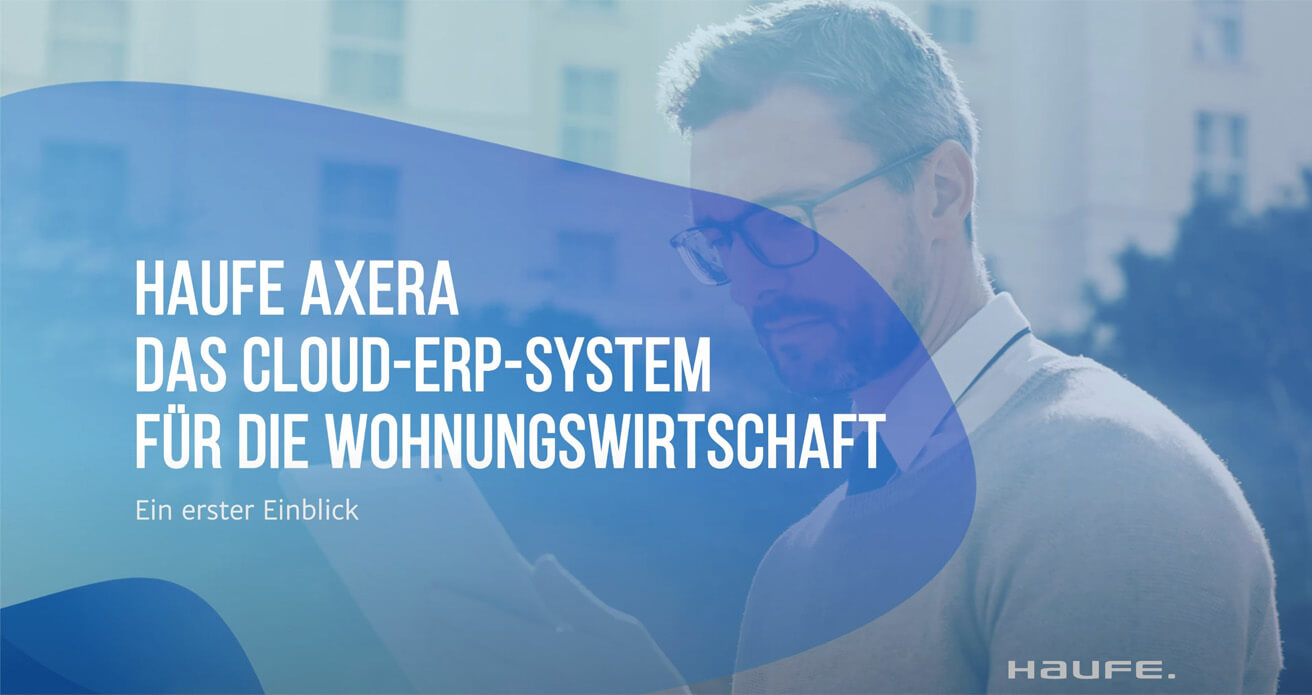 Mit Haufe axera Cloud ERP entscheiden Sie sich für eine umfassende und zugleich flexible Lösung. Entdecken Sie alle Vorteile und erfahren Sie, wie unser ERP aus der Cloud auch Ihr Wohnungsunternehmen und Ihre Immobilienverwaltung unterstützen kann.